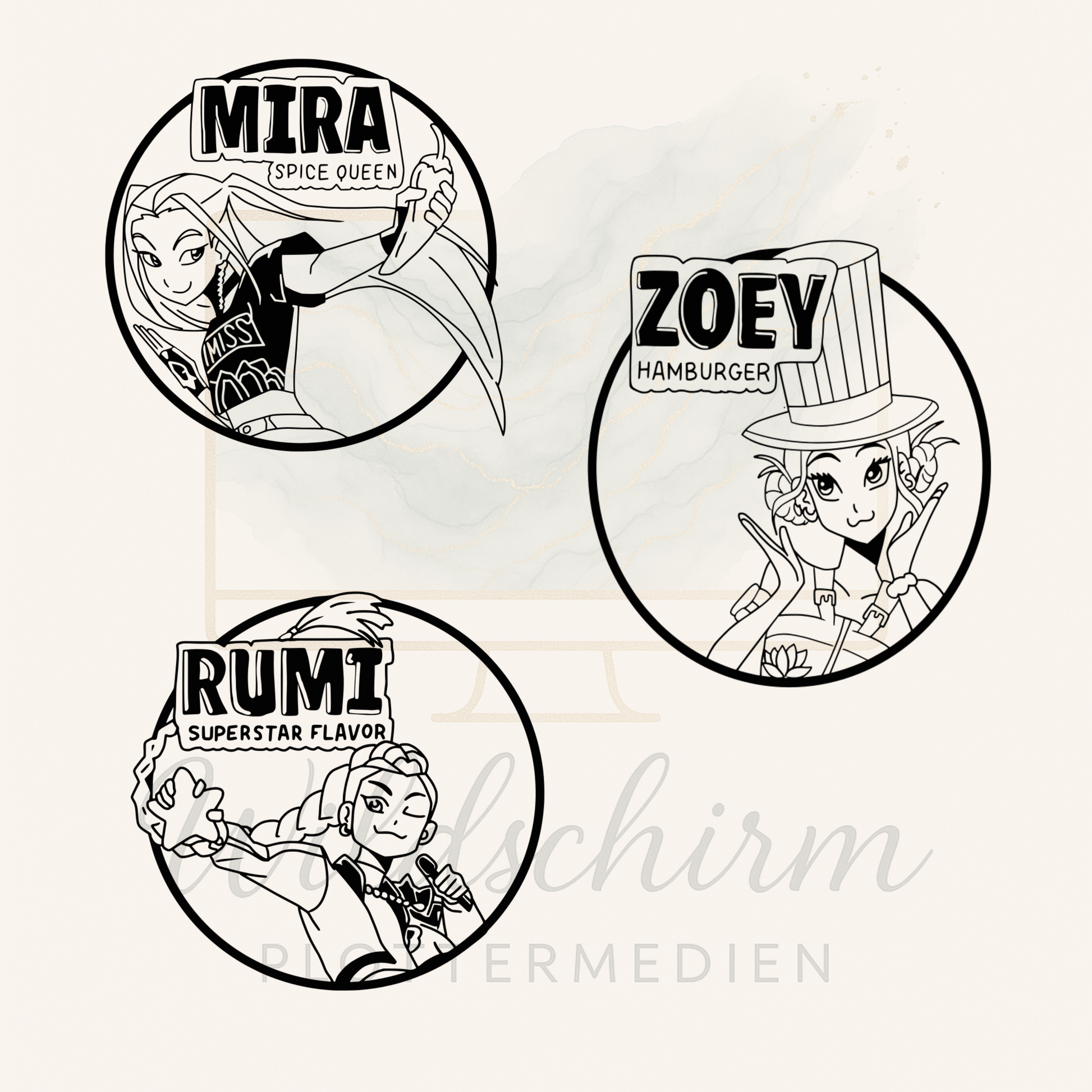 Dieses Set enthält 3 handgezeichnete Becher-Designs inspiriert vom Film „K-Pop Demon Hunters“.