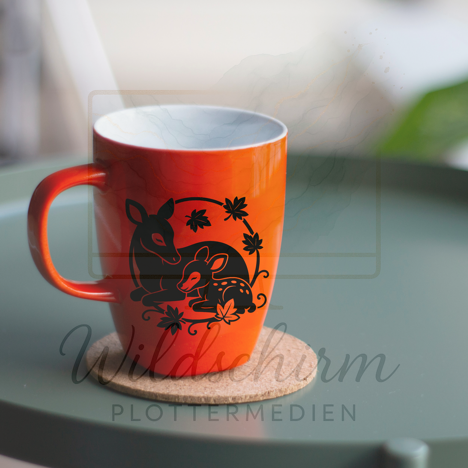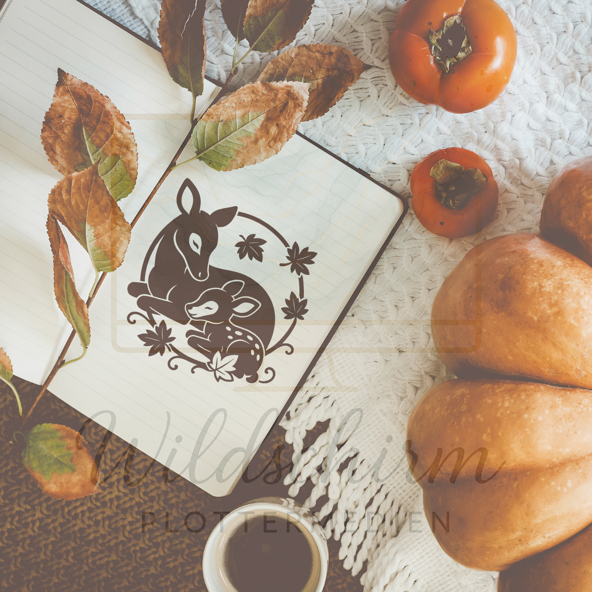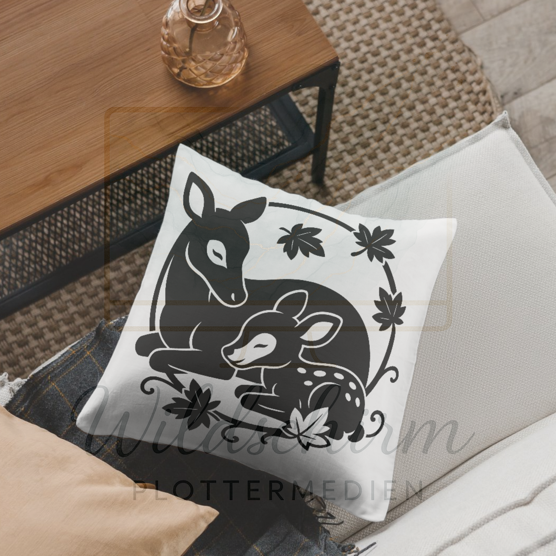 Dieses Design verbindet die zarte Ruhe des Waldes mit feiner Ornamentik im klassischen Scherenschnitt-Stil.