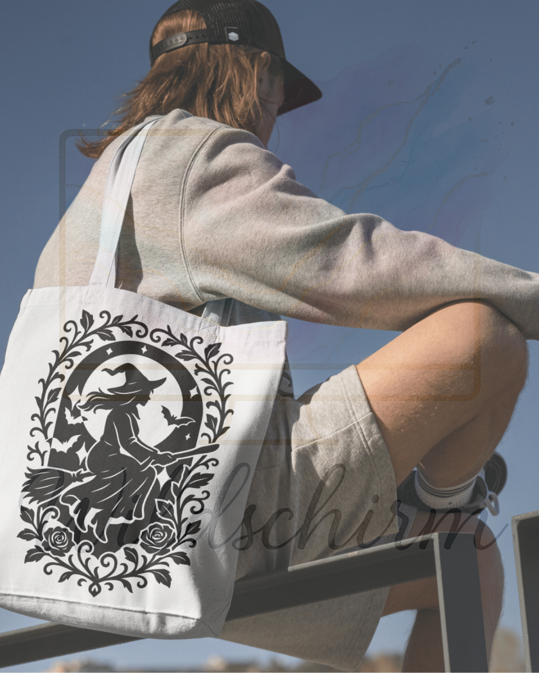 Die fliegende Hexe im Mondschein – Gothic Silhouette Witch