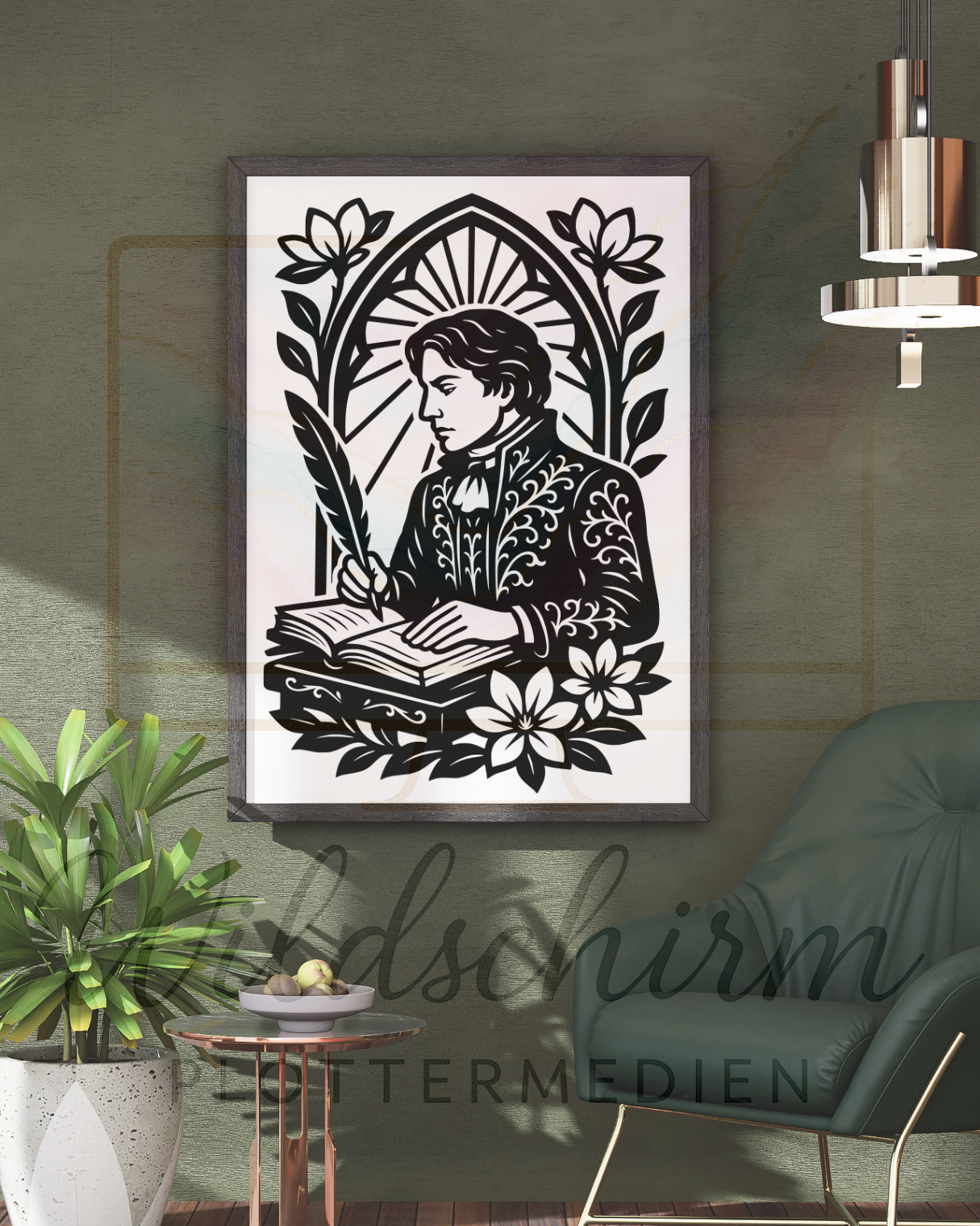 Der Dichter – Romantische Silhouette mit Feder & Buch